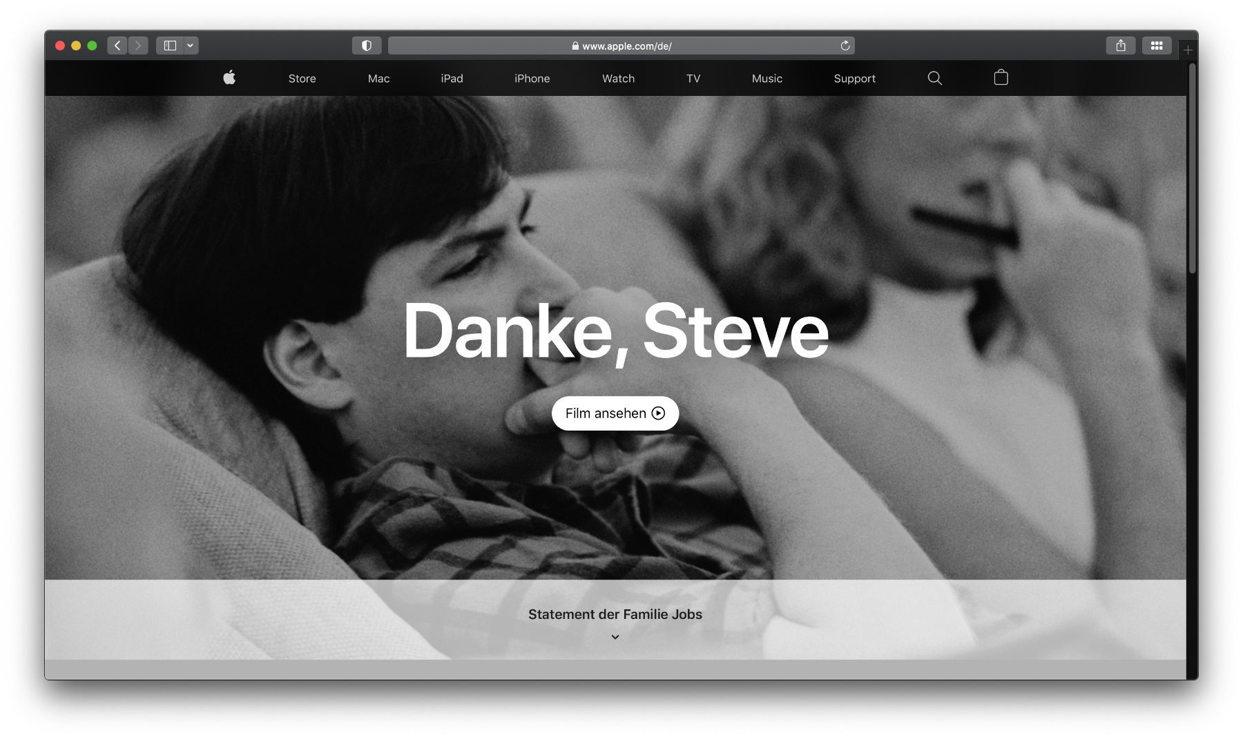 Am heutigen 5. Oktober 2021 hebt Apple auf seiner Webseite kein Produkt, sondern den Co-Gründer Steve Jobs hervor. Neben dem großen Schriftzug „Danke, Steve“, den dahinter angezeigten Schwarz-Weiß-Fotos und dem eingangs schon erwähnten Video gibt es ein Statement der Familie Jobs. Scrollt ihr auf der oben verlinkten Seite nach unten, dann könnt ihr euch die Nachricht der Familie von Steve Jobs durchlesen. Apple hält aber auch abseits des 10. Todestages und ähnlicher Events das (digitale) Gedenken an Steve Jobs aufrecht. So gibt es die „In Gedenken an Steve.“-Unterseite auf der Webseite; und nicht zuletzt das Steve Jobs Theater im Apple Park.