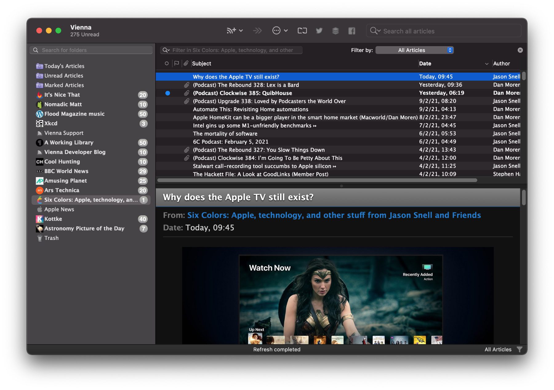 In Zeiten von Social Media, News-Apps und anderen omnipräsenten Medien sind Feedreader ein bisschen ins Hintertreffen geraten. Dabei sind die Programme zum Empfangen von RSS- und Atom-Feeds sehr praktisch. Wenn ihr Blogs, Foren, Nachrichtenseiten, News Rooms von Unternehmen oder andere Web-Angeboten mit RSS-Angebot verfolgen wollt, dann könnt ihr dazu die einfache, aber praktische Vienna App verwenden. Das Open-Source-Programm ist kostenlos und der Download kann über GitHub realisiert werden. Vienna wurde speziell für macOS programmiert, weshalb die App auf dem Apple Mac stabil läuft. Den Sir Apfelot Feed findet ihr übrigens ganz unten auf dieser Webseite vermittels des RSS-Symbols ;)