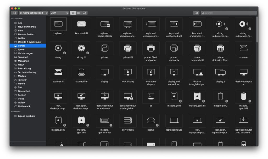 Die Apple-eigene App „SF Symbols“ hält über 3.300 Symbole in der San Francisco Schriftart bereit, die in den verschiedenen Systemen für Mac, iPhone, iPad, Apple Watch und Co. verwendet werden. Die kostenlose Symbol- und Piktogramm-Bibliothek ist kostenlos und hilft euch bei verschiedenen Aufgaben. Wollt ihr eine App mit Symbolen ausstatten, Anleitungen mit App-Symbolen schreiben, eure Ordner mit entsprechenden Bildern hervorheben oder anderweitig per Bildsprache auf bestimmte Funktionen und Inhalte aufmerksam machen? Dann könnte die aktuelle Version SF Symbols 3.2 (funktioniert ab macOS 10.15 Catalina) das Richtige für euch sein.