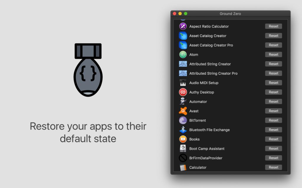Ground Zero hilft dabei, Apps auf dem Apple Mac zurückzusetzen. Das kann nötig sein, wenn man in den Einstellungen etwas verpfuscht hat oder wenn man die Software komplett neu aufsetzen will. Auch kann man damit ein bisschen Festplattenspeicher frei räumen, indem Presets, Plugins und Add-ons durch den Reset gelöscht werden. Das Interface ist dabei auf das Wesentliche beschränkt – man sucht sich aus einer Liste von installierten Programmen jenes aus, das man zurücksetzen will, klickt auf den jeweiligen „Reset“-Button und schon geht es los. Nicht nur im Privaten, sondern auch im Büro, im Coworking-Space und dergleichen sind die 99 Cent dabei gut investiert.
