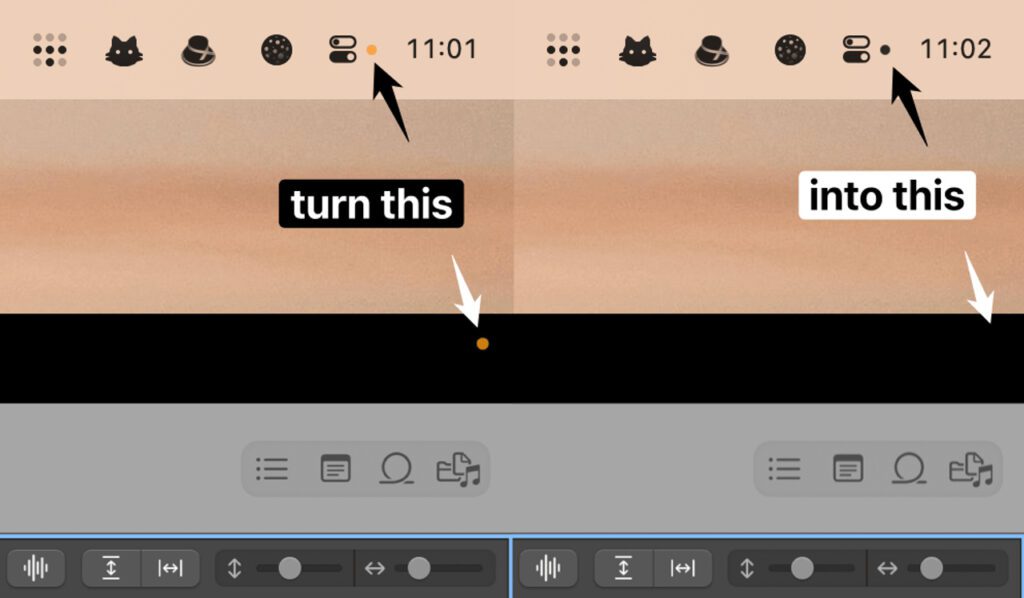 Die YellowDot App für den Apple Mac hat ihren Namen vom Aufnahmeindikator, der an Apple-Geräten seit iOS 14 und macOS Monterey aufzeigt, dass das Mikrofon oder die Kamera genutzt wird. Denn dieser orangene oder grüne Punkt wird auch dann angezeigt, wenn z. B. eine Bildschirmaufnahme stattfindet. Will man also ein Tutorial zusammenstellen, die System- oder App-Nutzung dokumentieren bzw. ein Let’s Play aufnehmen, kann der Aufnahmeindikator dabei stören. YellowDot überdeckt den Punkt einfach mit einem anderen, schwarzen Punkt. Zudem können weitere Symbole der Menüleiste, die bei der Audioaufnahme, der Bildschirmaufnahme und / oder der Kamera-Nutzung erscheinen, überblendet werden.