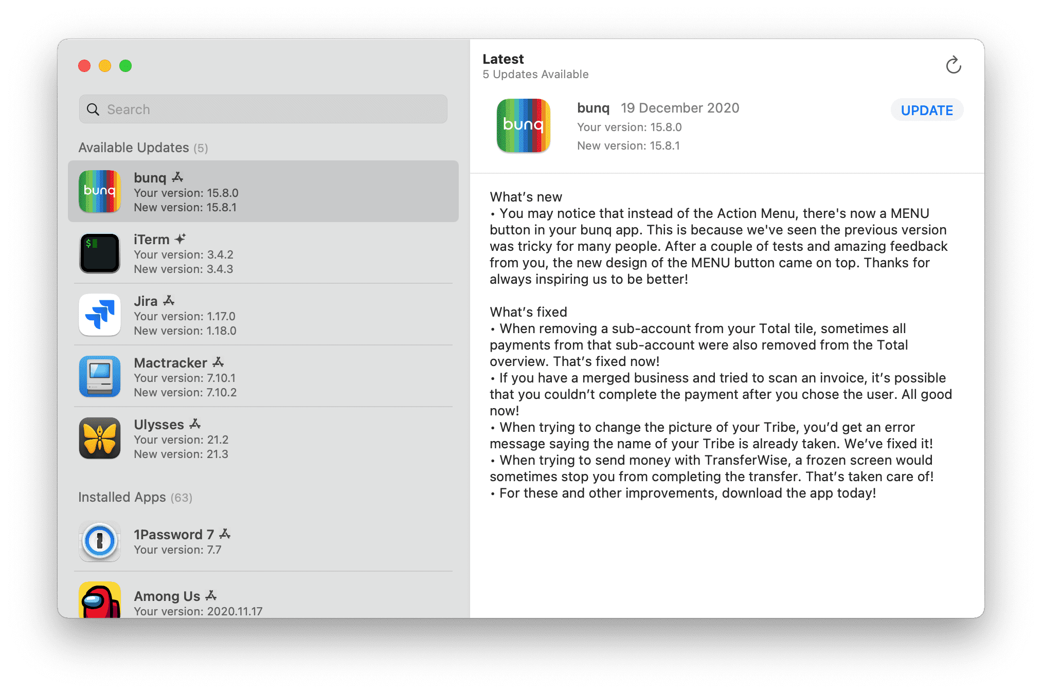 Latest ist eine App, die euch hilft, den Überblick über App-Updates zu behalten. Wenn ihr lediglich Software nutzt, die ihr aus dem App Store herunterladet, dann braucht ihr Latest wahrscheinlich nicht. Denn der Apple-eigene Marktplatz für Programme gibt bereits Aufschluss über die neuen Versionen. Verwendet ihr allerdings auch oder vor allem Apps, die ihr aus dem Web heruntergeladen habt – etwa von den Entwickler/innen-Webseiten oder von GitHub – dann hilft euch die Latest App dabei, die installierte und die aktuell verfügbare Version abzugleichen sowie ggf. ein Update durchzuführen. So müsst ihr nicht jede App einzeln überprüfen oder deren Webseiten nach Updates durchforsten.