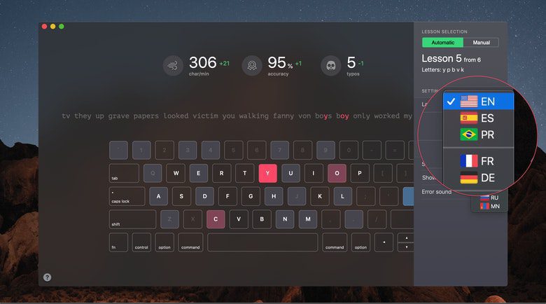 Das Zehnfingersystem fürs schnelle Tippen auf der Tastatur ist praktisch, um Texte in kurzer Zeit sowie ohne auf die Tasten und Finger schauen zu müssen zu schreiben. Nur ist das Erlernen des Systems fürs Schreiben mit allen zehn Fingern auf der Tastatur mühsam. Kurse werden zudem meist nur für eine Tastatur (also hierzulande auf Deutsch für die QWERTZ-Tastatur) angeboten. Außer natürlich ihr nutzt KeyKey Typing Tutor. Die Mac App beinhaltet Tippübungen und zeigt die Fehlerquote an, um die Nutzer/innen zu Verbesserungen zu motivieren. Zudem können neben Deutsch auch Französisch, Spanisch, Portugiesisch und Englisch eingestellt werden. Ihr bekommt die KeyKey Typing Tutor App u. a. im Setapp-Abo.