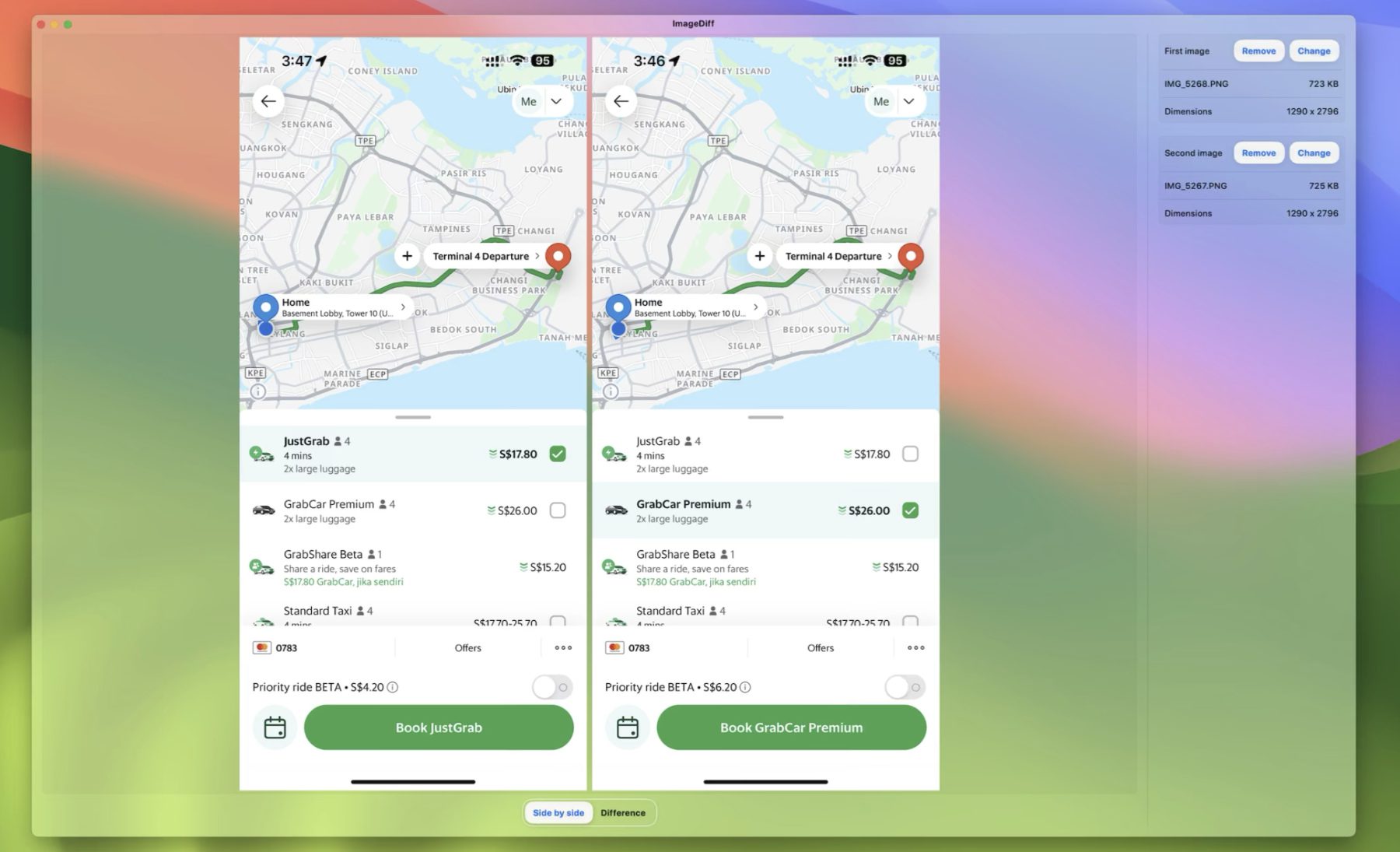 ImageDiff ist eine kostenlose App, die dabei hilft, Unterschiede auf Bildern ausfindig zu machen. So lassen sich auch kleine Abweichungen finden und Anpassungen, Retuschen oder andere Manipulationen schneller lokalisieren. Dazu werden die zwei Bilddateien einfach in die Software geladen. Eine Seite-an-Seite-Ansicht hilft dann bereits beim manuellen Vergleich. Die Anzeige der Auflösungen und Dateigrößen helfen ebenfalls beim ersten Vergleich. Wechselt man dann von der „Side by side“-Ansicht in die „Difference“-Ansicht, werden jene Bereiche angezeigt, die sich auf den Bildern unterscheiden. Die nichtmal 1 MB kleine Software ist auf Englisch nutzbar und ab macOS 13.0 mit dem Apple Mac kompatibel.