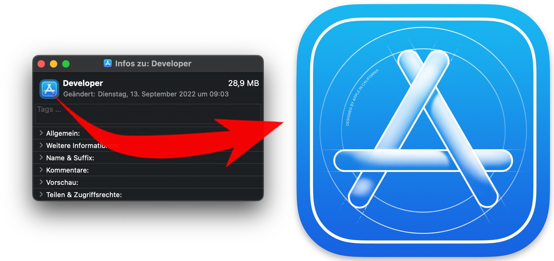 - Im Informationen-Fenster oben links auf das App-Symbol klicken, sodass es ausgewählt ist