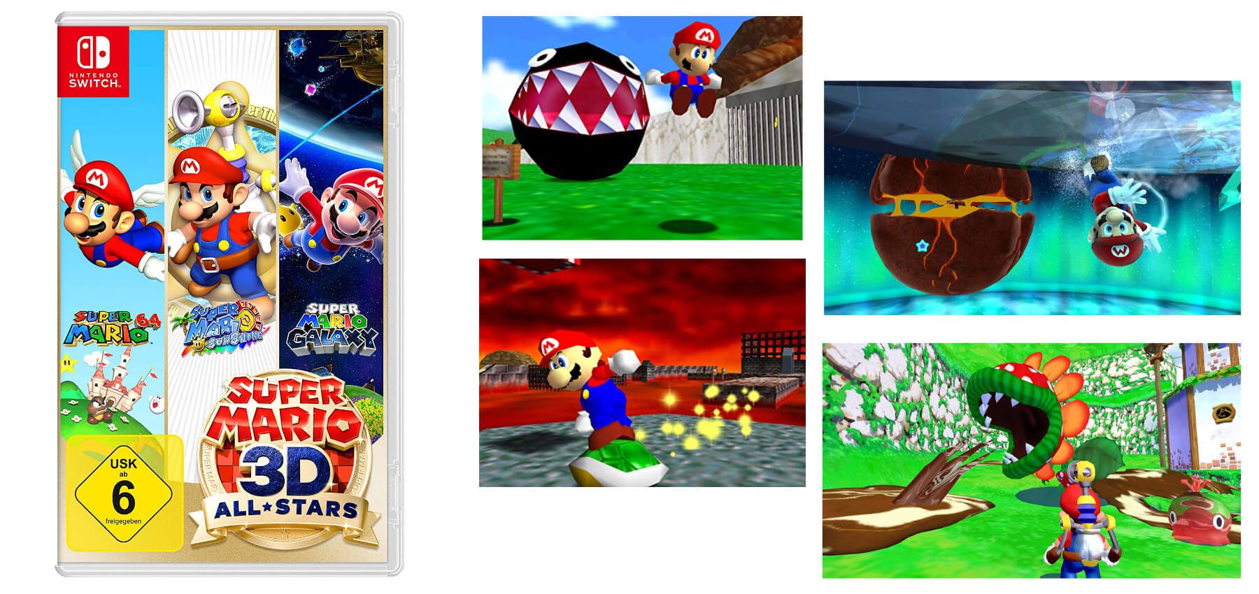 Die ersten drei 3D-Titel aus Nintendos „Super Mario“-Reihe könnt ihr euch ab heute im Set für die Switch sichern. In „Super Mario 3D All-Stars“ sind Super Mario 64, Super Mario Sunshine und Super Mario Galaxy enthalten. Das limitierte Spiel ist nur bis zum März 2021 erhältlich – Sammler/innen sollten sich also jetzt schon mal eine physische Ausgabe sichern. Denn nachdem das 35. Jubiläum von Mario fertig zelebriert ist, wird es das Spiel wahrscheinlich nur noch zu überteuerten Preisen auf eBay geben. In diesem Beitrag findet ihr weitere Infos und Details sowie natürlich den Preis für das Spiele-Paket.