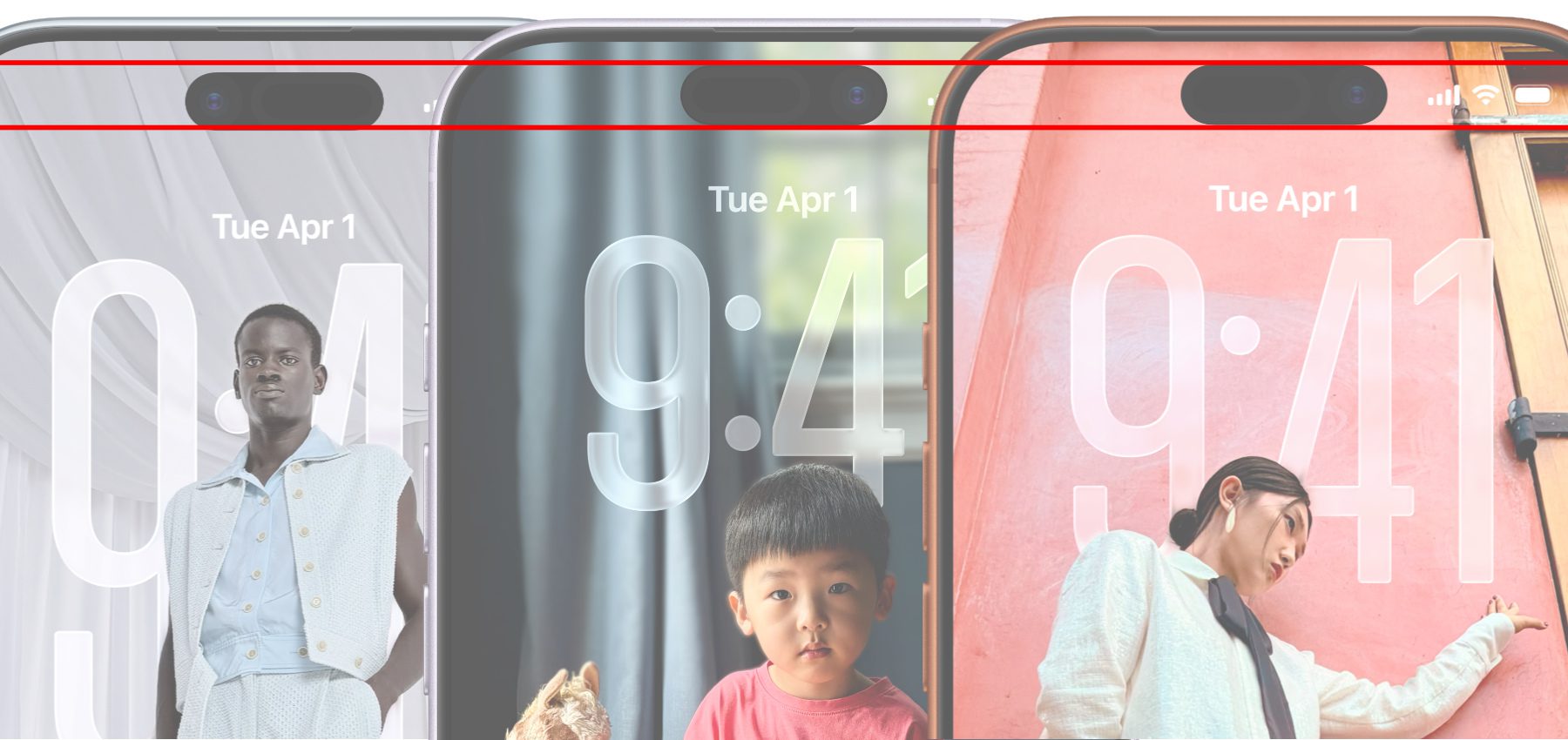 ich gebe zu, ich habe die rote Linie nicht ganz eindeutig gesetzt. Sie schließt unter den Dynamic Islands von iPhone 17 und 17 Pro ab. Deren Dynamic Islands gehen also nur bis zur roten Linie. Die Dynamic Island des iPhone Air geht darüber hinaus. Unter der roten Linie siehst du noch so 1 bis 2 Pixel hoch die Dynamic Island als schwarzen Strich. Da hätte ich etwas eindeutiger markieren müssen, damit man das besser sieht.