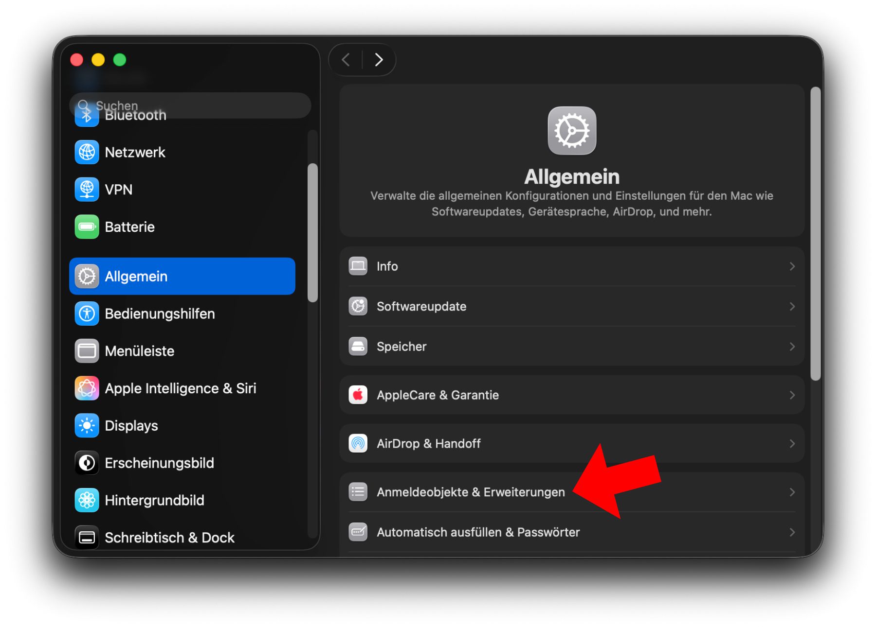 - In der Seitenleiste den Punkt Allgemein auswählen