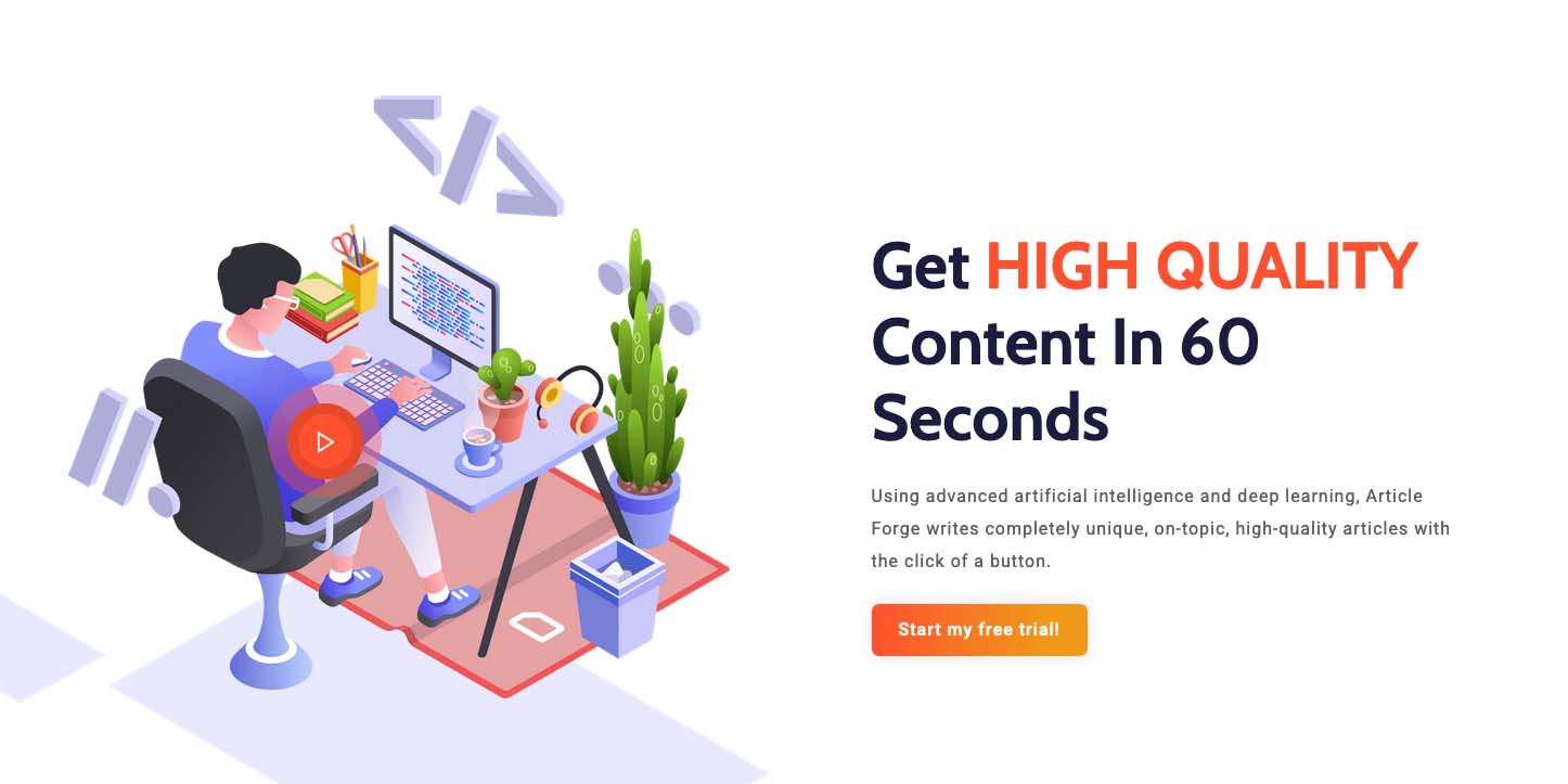 Wer selbst mal sein Glück mit der Textgenerierung probieren möchte, der kann den kostenlosen 7 Tage Test von Article Forge nutzen.