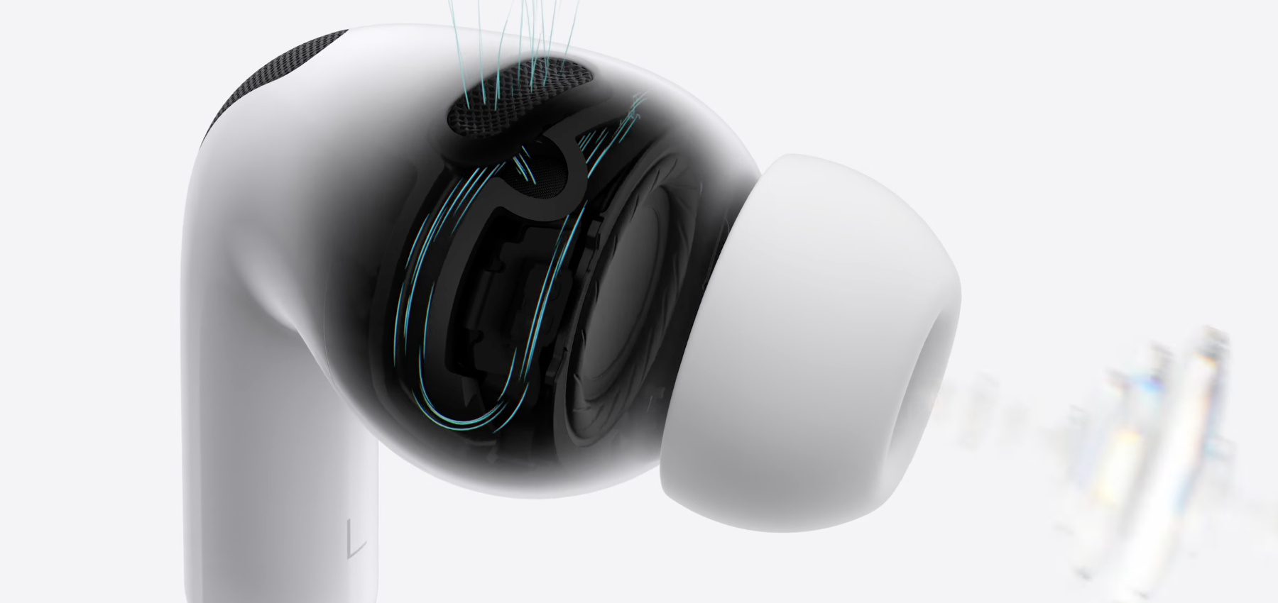 Die Silikon-Aufsätze, mit denen die Ohrstöpsel ins Ohr eingesetzt werden, sind bei den AirPods Pro 3 mit einem Schaum-Material gefüllt. Dieses soll im Vergleich zu den AirPods Pro 2 für eine doppelt so gute aktive Geräuschunterdrückung sorgen; im Vergleich zu den ersten AirPods Pro soll die Umwelt viermal so gut ausgeblendet werden können.