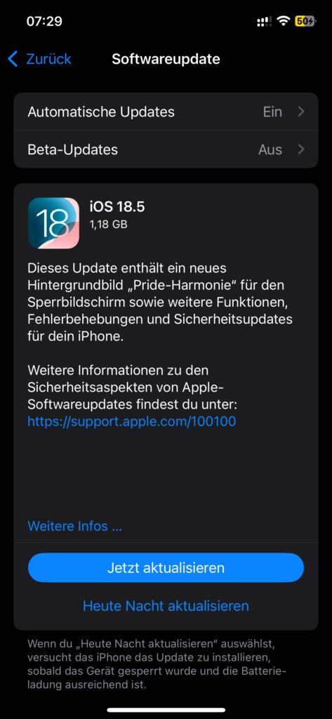 Das Update auf die Betriebssystemversion iOS 18.5 findet man auf dem iPhone in der Einstellungen App unter Allgemein sowie dort unter Softwareupdate. Den vordergründig sichtbaren sowie nutzbaren Inhalten der Aktualisierung hatten wir uns letzte Woche bereits gewidmet.