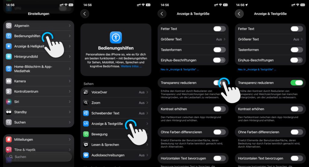 iPhone-Bedienungshilfe: Liquid Glass Transparenz reduzieren