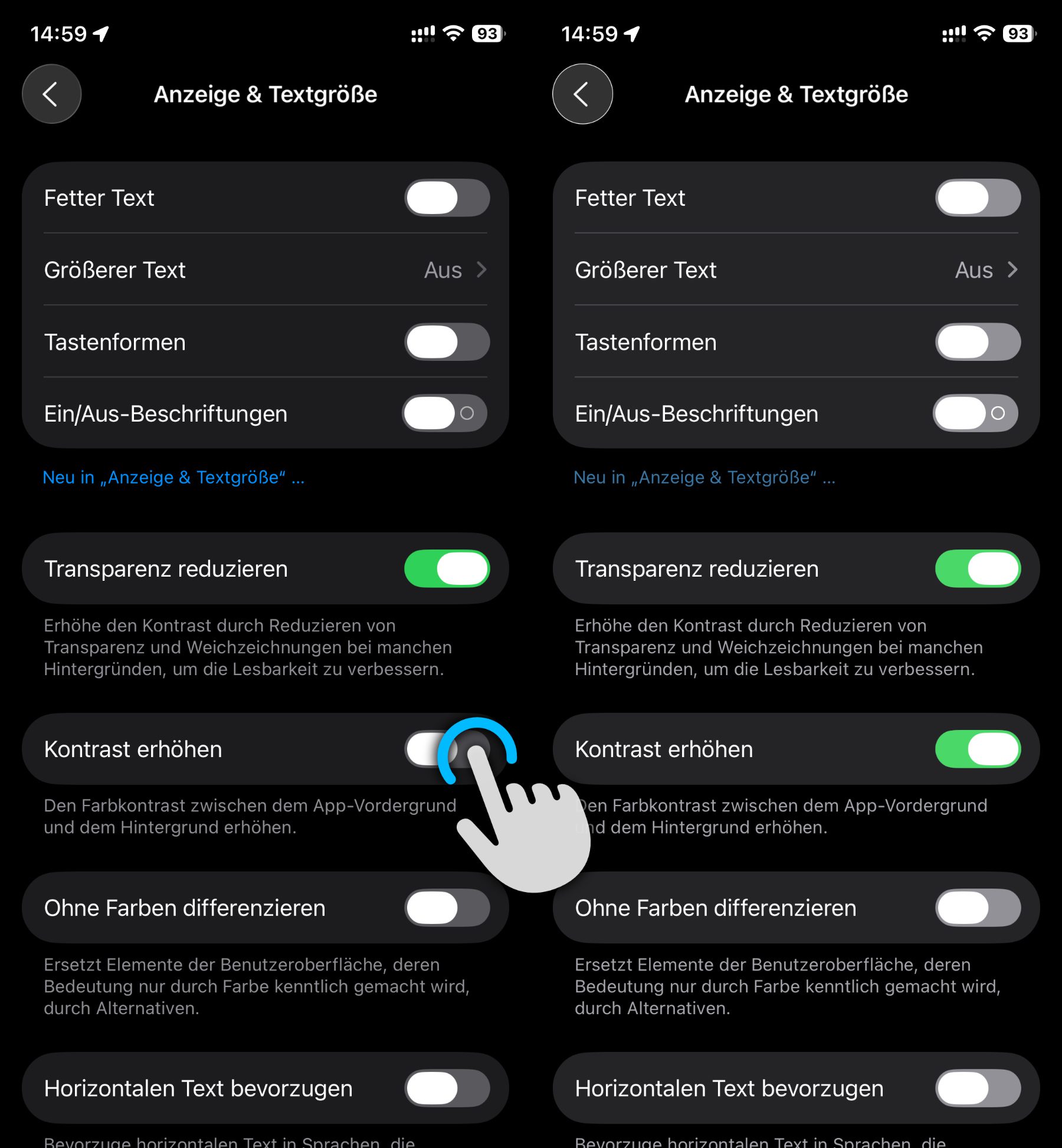 - Den Schalter Kontrast erhöhen aktivieren