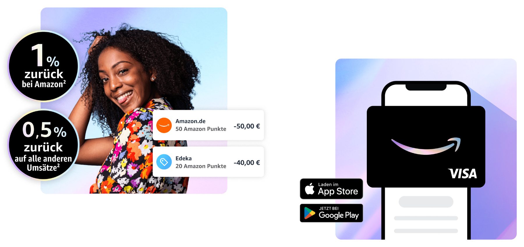 - Für Visa-Bezahlungen außerhalb von Amazon gibt es 0,5% zurück