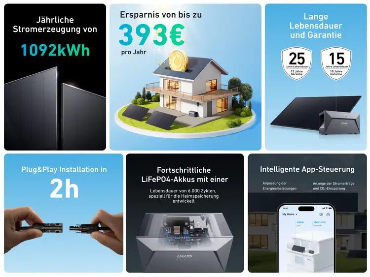 Die Solar-Powerbank ist gegen Regenwasser geschützt und staubdicht, sodass sie im Außenbereich eingesetzt werden kann. Während es auf die Solaranlage 25 Jahre Garantie gibt, da bekommt ihr für den Nachtspeicher 12 Jahre Garantie. In diesem Zeitraum hat sich beides sicher schon mehrfach amortisiert. Anker spricht von bis zu 7.830 Euro Einsparungen, die sich beim Einsatz von SOLIX RS50B Balkonkraftwerk und SOLIX E1600 Solarbank erreichen lassen. So relativieren sich auch die Kosten von derzeit 1.748 Euro für das Komplettset.