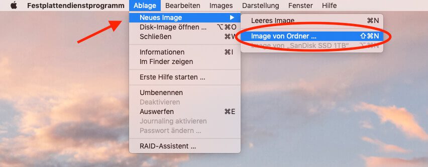 - Unter Ablage > Neues Image > Image von Ordner auswählen