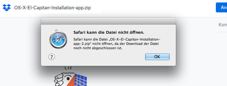 Kopiert man nun eine .app-Datei in die Dropbox oder per FTP auf einen Server, passiert es zum Beispiel, dass Dropbox eine Datei anzeigt, die 0 KB groß ist. Man hat vom Installer quasi nichts geladen, sondern nur eine fehlerhafte Datei, die keinen Inhalt hat.