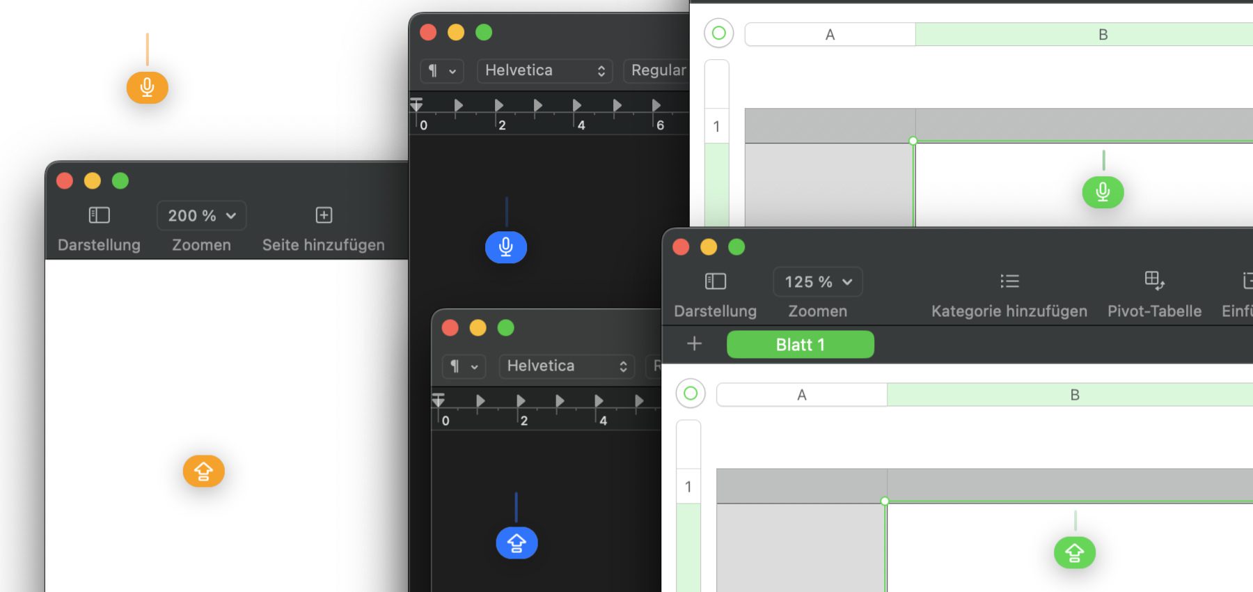 Wer jedoch Pages, Numbers, Keynote, Notizen und TextEdit nutzt sowie ab und zu das Adressfeld oder andere Textfelder in einem Browser nutzt, hat die Symbole am Text-Cursor vielleicht schonmal bemerkt. Interessant dabei: In der aktuellen Sonoma-Version werden sie noch nicht in der Freeform App angezeigt. Daraus dass dort sowie in den Microsoft-Apps die alte Diktat-Anzeige (s. o.) zum Einsatz kommt, kann man aber ableiten, dass selbige noch zur Verfügung steht.