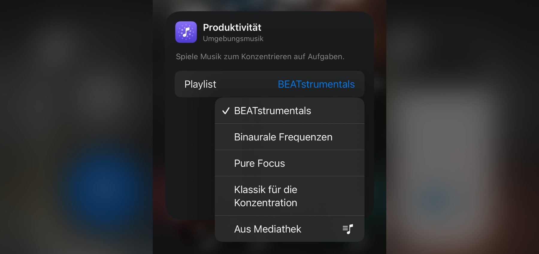 iPhone Umgebungsmusik: Voreingestellte Wiedergabelisten anzeigen lassen