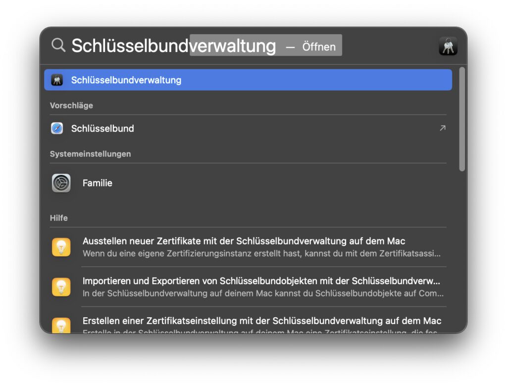 Mac Schlüsselbundverwaltung über die Spotlight-Suche aufrufen