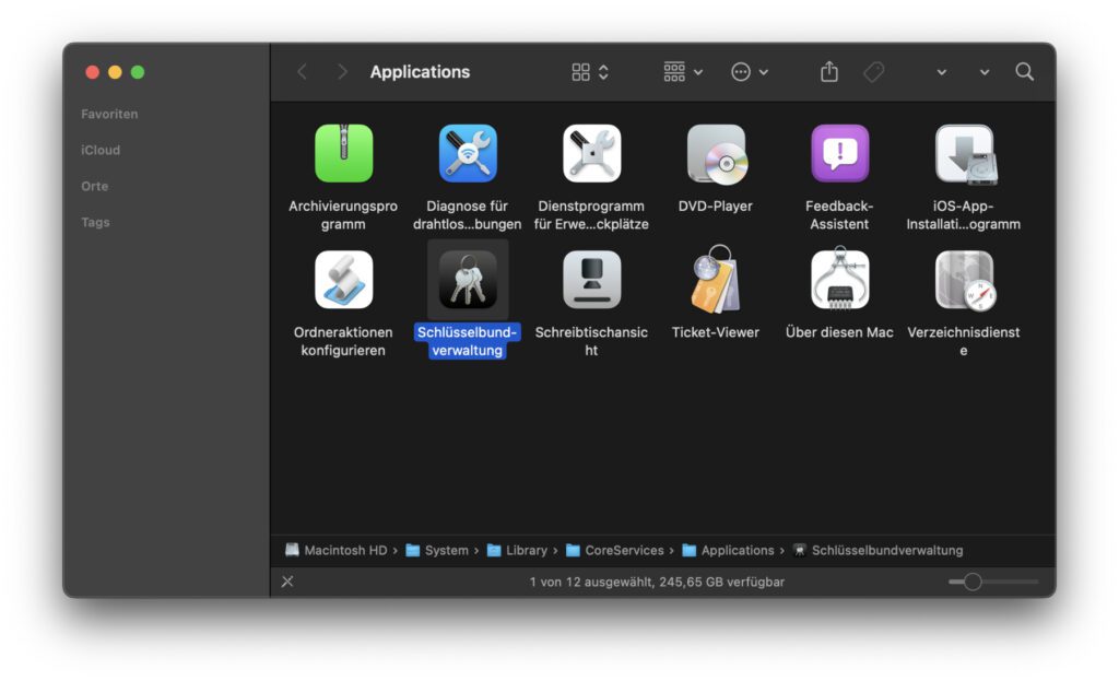 Mac Schlüsselbundverwaltung als App über den Finder aufrufen