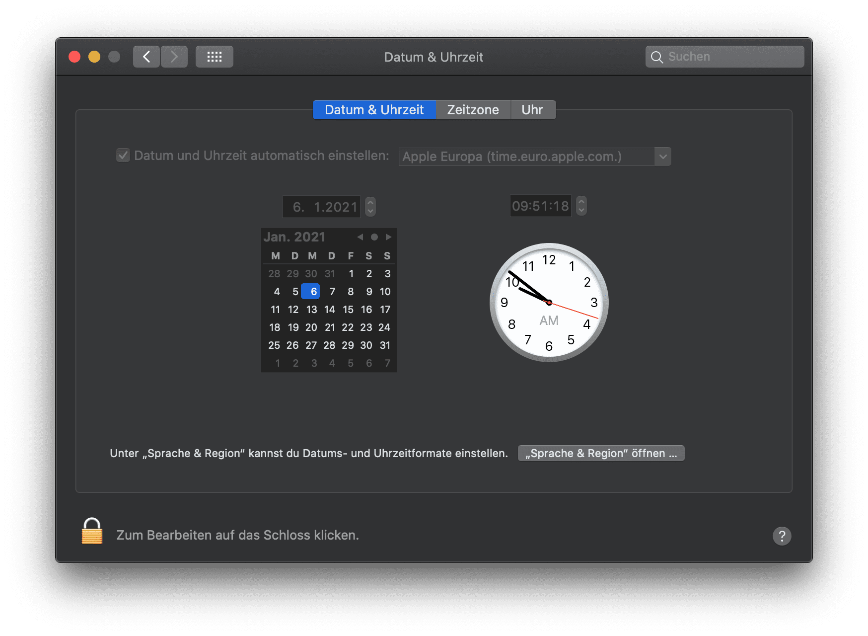 Stimmen Datum und Uhrzeit am Apple Mac?