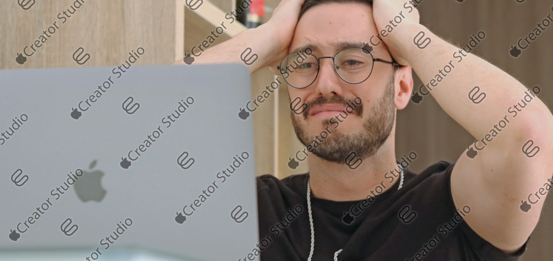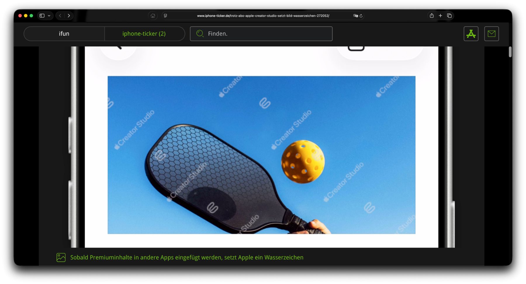 Kopiert oder zieht man eines der Bilder in eine andere App, um Anpassungen vorzunehmen, Elemente hinzuzufügen oder sie anderweitig zu bearbeiten, zeigen sie auf einmal Wasserzeichen auf. Diese Wasserzeichen zeigen das Creator Studio Symbol sowie das Apple-Logo mit dem Schriftzug „Creator Studio“.