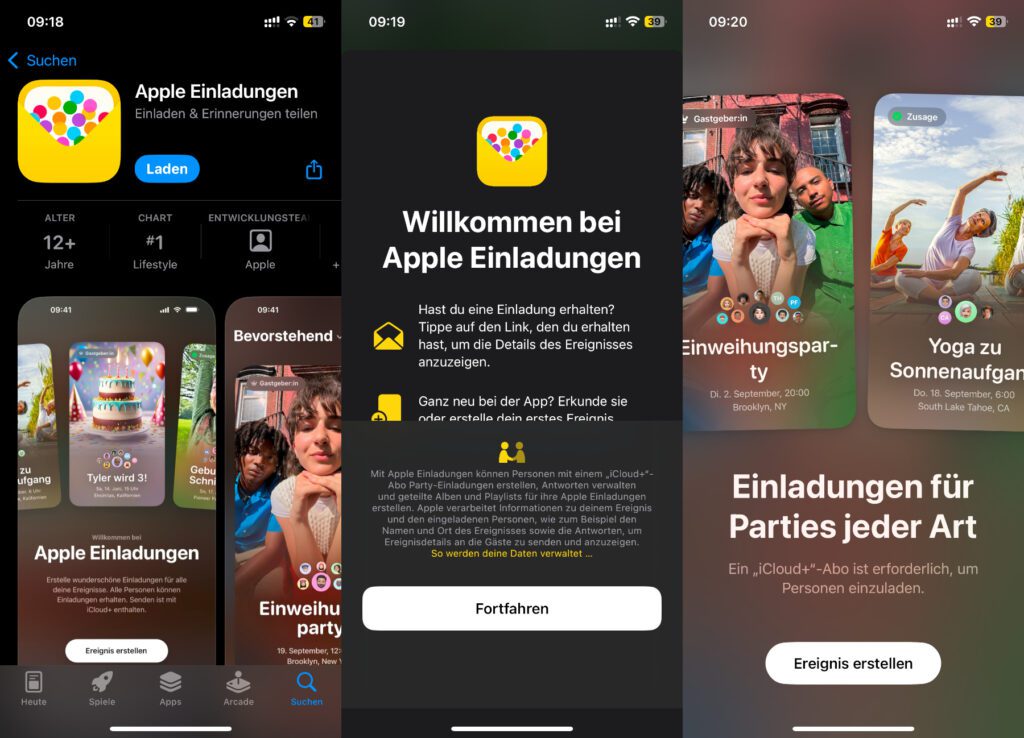 In den letzten Wochen gab es immer wieder Gerüchte dazu, nun ist die Katze aus dem Sack. Denn Apple hat offiziell die neue Apple Invites App bzw. Apple Einladungen App vorgestellt. Mit dieser lassen sich individuelle Einladungen verschicken – egal ob für Geburtstage, Fernsehabende, Einweihungspartys, Hochzeiten oder was auch immer. Wer die neue App für einen kleinen Test aus dem iPhone App Store lädt und nutzen will, erhält eventuell einen kleinen Dämpfer. Denn sie lässt sich nur von Leuten nutzen, die ein „iCloud+“-Abonnement haben.