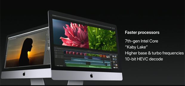 Im Inneren kommt ein Intel Core CPU der siebenten Generation zum Tragen. In Fachkreisen wird dieser auch Kaby Lake genannt. Der Intel-Chip der 7ten Generation kam im Q3 2016 auf den Markt und sorgt im Apple iMac für noch mehr Leistung und wesentlich höhere Turbo-Frequenzen (in Zahlen: 4,2 bis 4,5 GHz). Auch gibt es ein Update für den RAM beim iMac: das 21,5 Zoll Modell bekommt bis zu 32GB, das 27 Zoll Modell bis zu 64GB.
