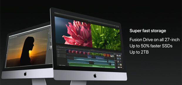 Zudem wird der Speicher erweitert und schneller gemacht. Alle 27 Zoller sollen mit Fusion Drive daherkommen und bis zu 50% schnellere SSD Festplatten mitbringen. Deren Speicher im Apple iMac 27 Zoll kann bis zu 2TB gewählt werden! Außerdem wird die Konnektivität erweitert: Zu USB-A kommt zweimal USB-C bzw. Thunderbolt 3 und sogar Ethernet für bis zu 10 GBit/s dazu.