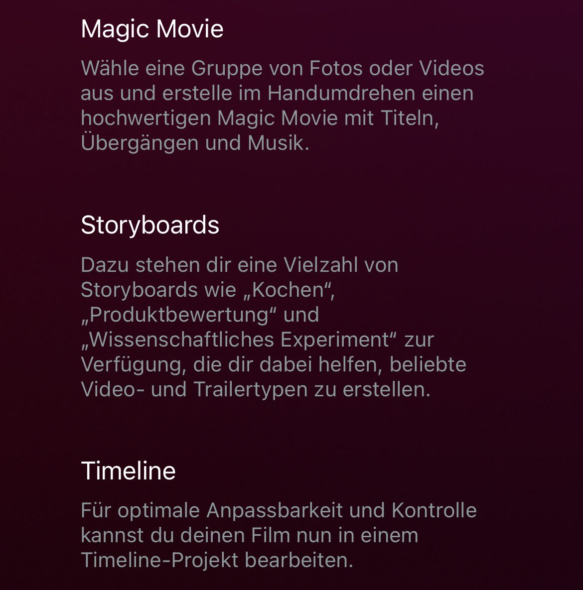 Funktionen nach dem Update: Magic Movie, Storyboards und Timeline