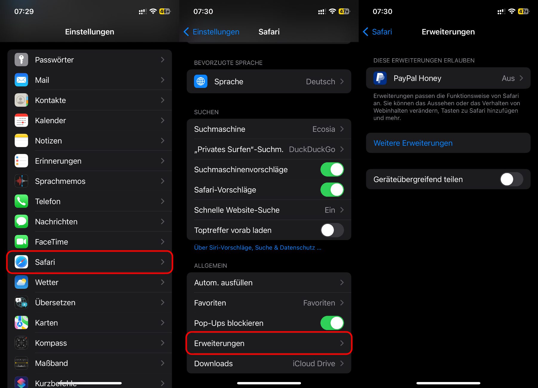 Wie kommt die PayPal Honey Safari-Erweiterung aufs iPhone?