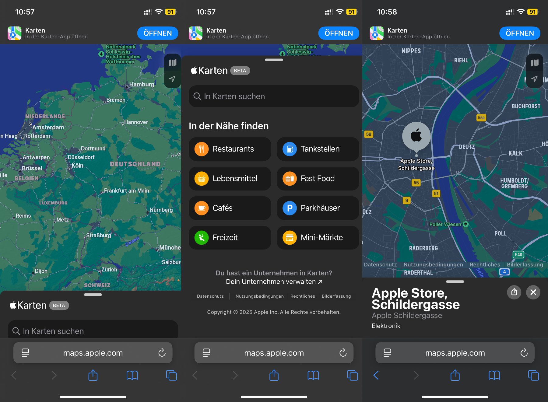 Als Apple sein Karten- und Navigationsangebot im Juli 2024 als Web-Angebot startete, war es nur auf Computern und Tablets nutzbar. Auch als die Apple Karten im Web kurz vor Weihnachten mit der Umsehen-Funktion erweitert wurden, waren sie noch nicht über Safari unter iOS nutzbar. Dies hat sich nun geändert. Seit dieser Woche kann man das Angebot neben Mac, iPad, PC und Co. auch auf dem iPhone nutzen.