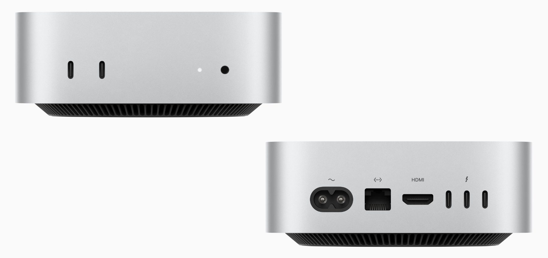 Aber damit noch nicht genug. Während beide auf der Vorderseite zwei USB-C- und einen Kopfhörer-Anschluss mitbringen, da unterscheiden sich auf der Rückseite die drei Thunderbolt-Ports voneinander. Denn wer sich für den M4 entscheidet, bekommt lediglich Thunderbolt 4 (bis zu 40 GBit/s). Bei der Wahl des M4 Pro wird der Mac mini mit Thunderbolt 5 ausgestattet und liefert damit bis zu 120 GBit/s. Abseits davon bleiben aber die Kompatibilitäten mit USB 4 und DisplayPort gleich. Auch die anderen Anschlüsse – Strom, Ethernet und HDMI – sind bei beiden gleich.