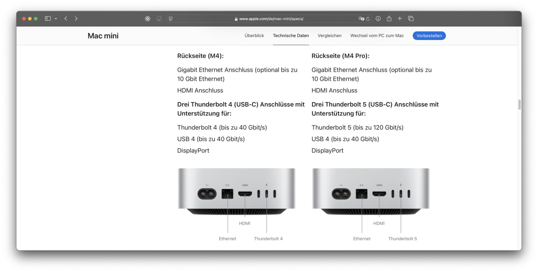 Technische Daten des Mac mini 2024