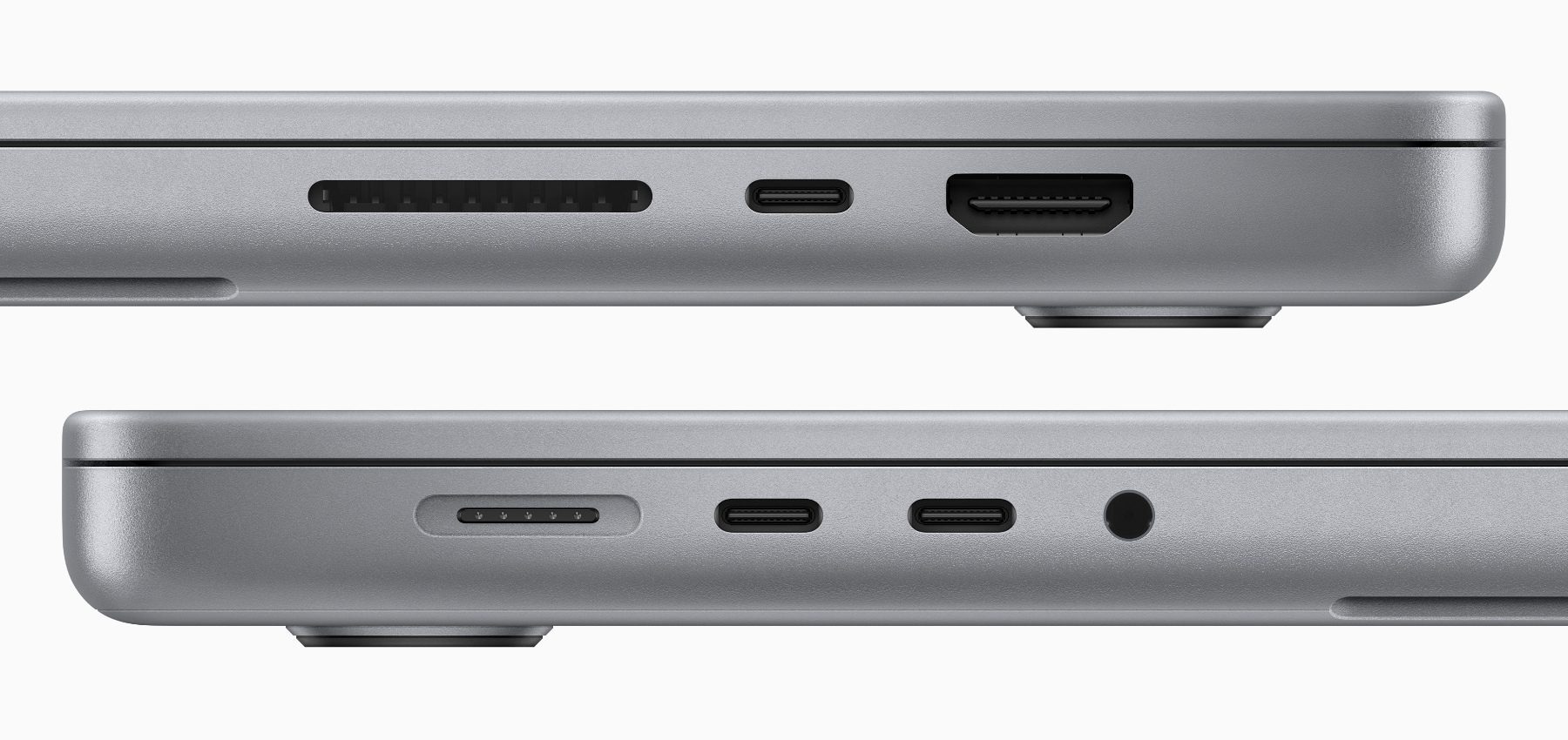 - Physische Schnittstellen: HDMI, SDXC-Kartensteckplatz, 3,5 mm Kopfhöreranschluss, 3x Thunderbolt 4 (USB-C mit Kompatibilität für Aufladen, DisplayPort, Thunderbolt 4 und USB 4)