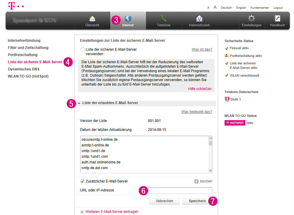 Hintergrund: iCloud-Server nicht in der Whitelist des Speedports
