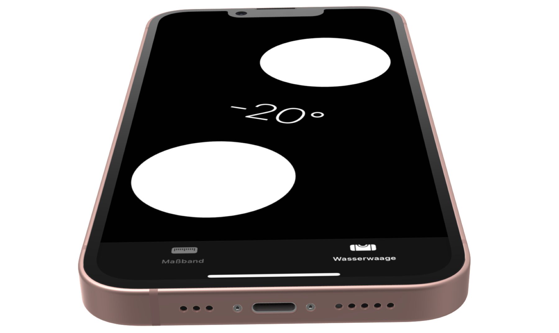 Bei der Verwendung von Hoch- und Querformat werden Hilfslinien angezeigt sowie der Bildschirm teilweise eingefärbt, damit lassen sich die Ausrichtung auf x- und y-Achse (Kante der Färbung) sowie die Neigung auf der z-Achse (Höhe der Färbung) einschätzen. Auf Flächen abgelegt zeigt das Display zwei Kreise und die dazu passende Grad-Anzeige. Liegen die Kreise übereinander, dann ist die Fläche eben und die Neigung misst 0°.
