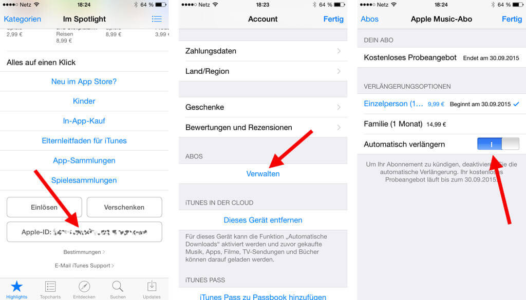 Automatisches Verlängern des Apple-Music-Abo abschalten