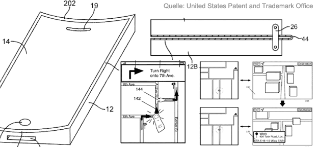 Wie vor zwei Wochen schon angedeutet, so gibt es das damals gewährte Patent für ein vertikal klappbares iPhone und eines, das ein horizontal klappbares Gerät zeigt. Letzteres Patent wurde nun ebenfalls Apple zugeschrieben sowie gewährt. Die Patentnummer dafür lautet 9504170. Ob Apple aber auf die in diesem Patent beschriebene Technik zurückgreifen wird (das Patent geht auf einen Antrag aus dem Jahr 2011 zurück), ist fraglich. Mittlerweile gibt es modernere Lösungen und flexiblere Technologien.