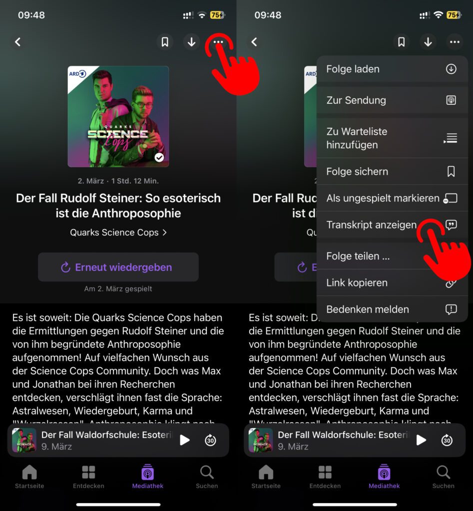 - 6 Über Folgenliste das Podcast-Transkript anzeigen