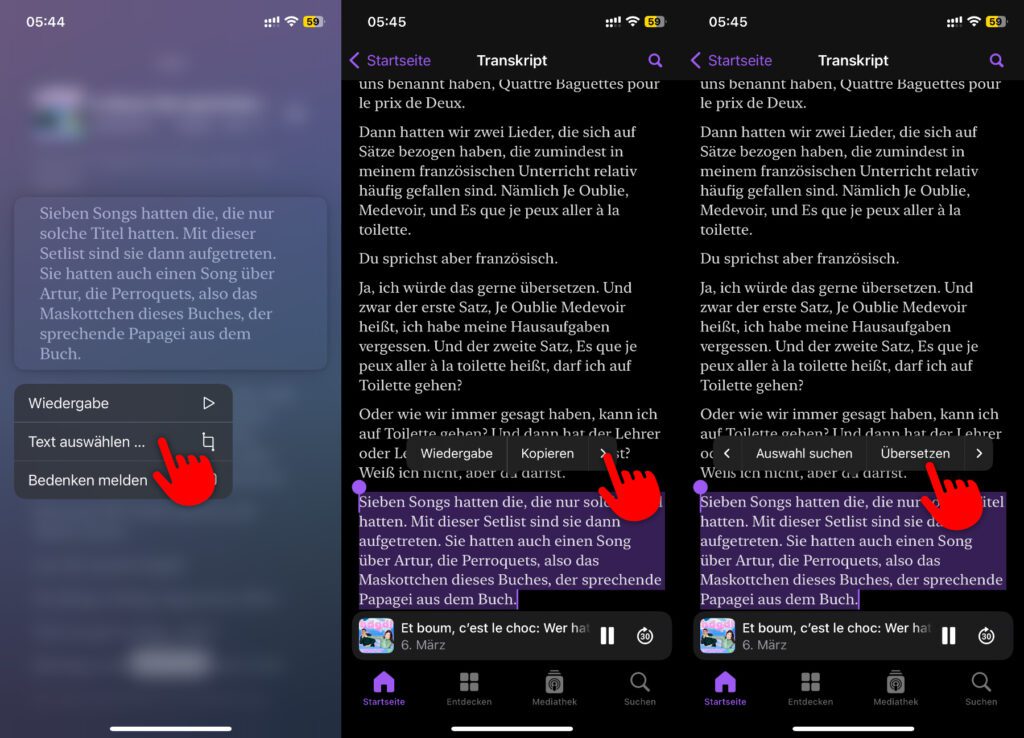 Podcast-Text kopieren, übersetzen und mehr: So geht’s!