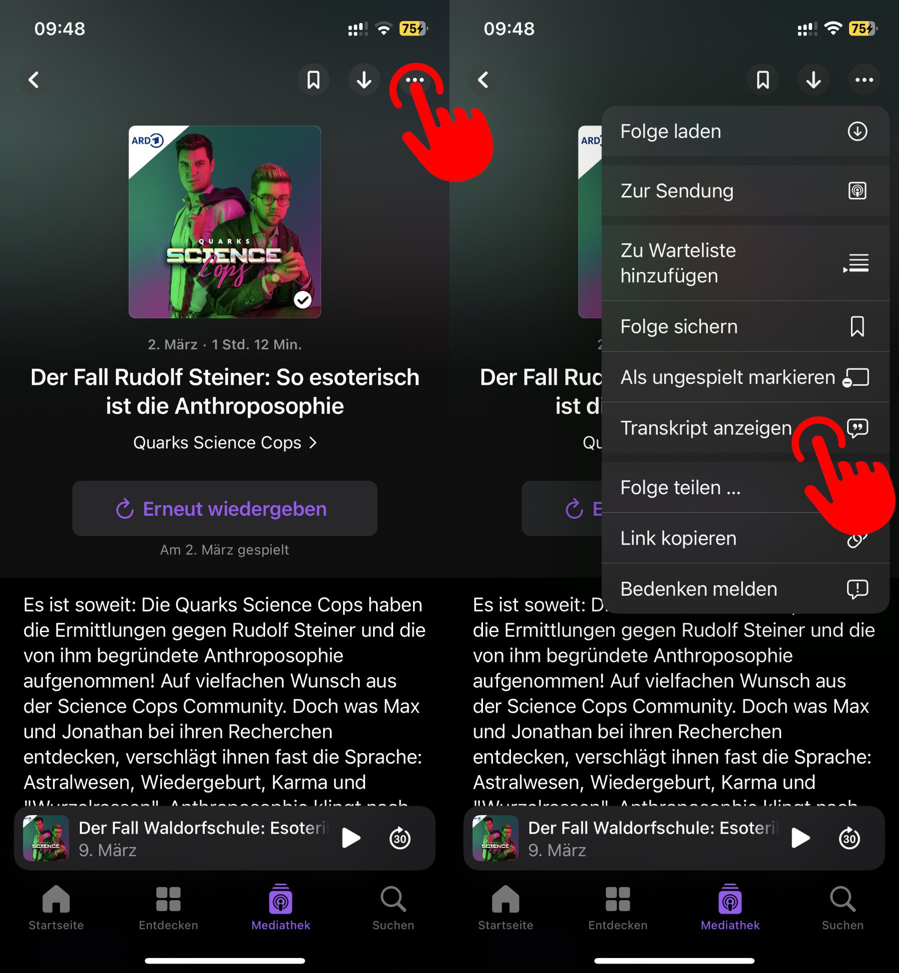 - 6 Über Folgenliste das Podcast-Transkript anzeigen