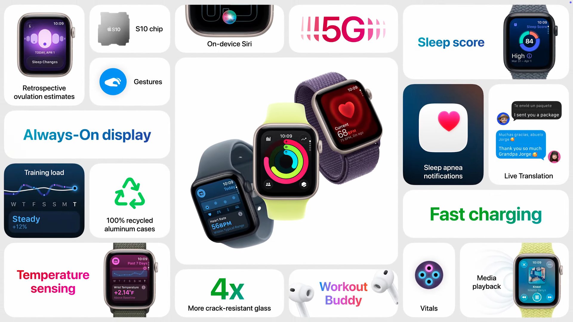 - Pulsmessung für Workouts inkl. Integration in Fitness- und Health-Apps sowie Fitness+