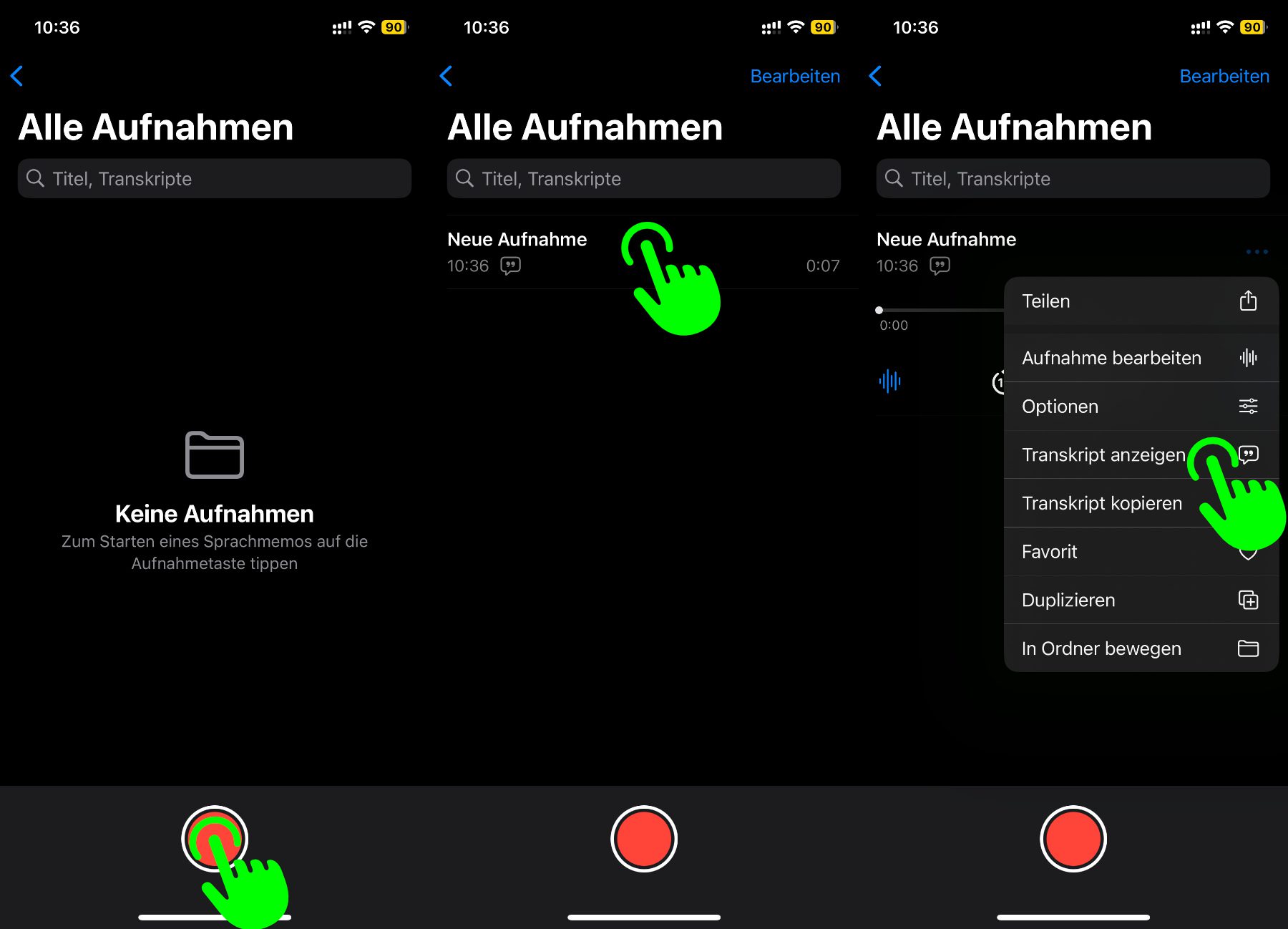 In diesem Ratgeber soll es dabei um den ersten Punkt gehen: Transkripte von Sprachmemos. So ist das allgemeine Vorgehen zum Aufrufen derselben: