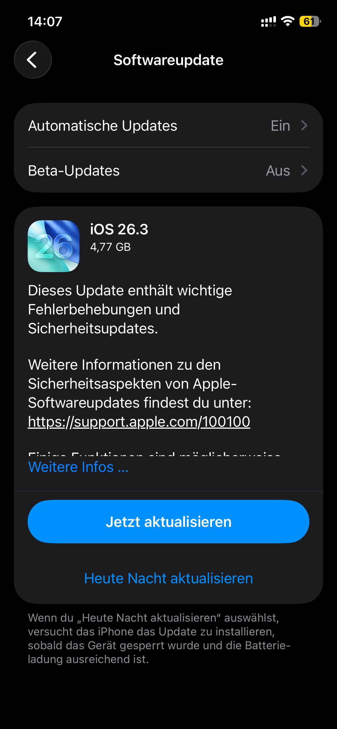 Nicht zuletzt werden mit iOS 26.3 auch eine Reihe von Sicherheitslücken des iPhones geschlossen. Deshalb gibt es neben den Updates für die „26“-Systeme jene für ältere iOS-, iPadOS- und macOS-Versionen – diese bekommen ebenfalls Patches für Sicherheitslücken.