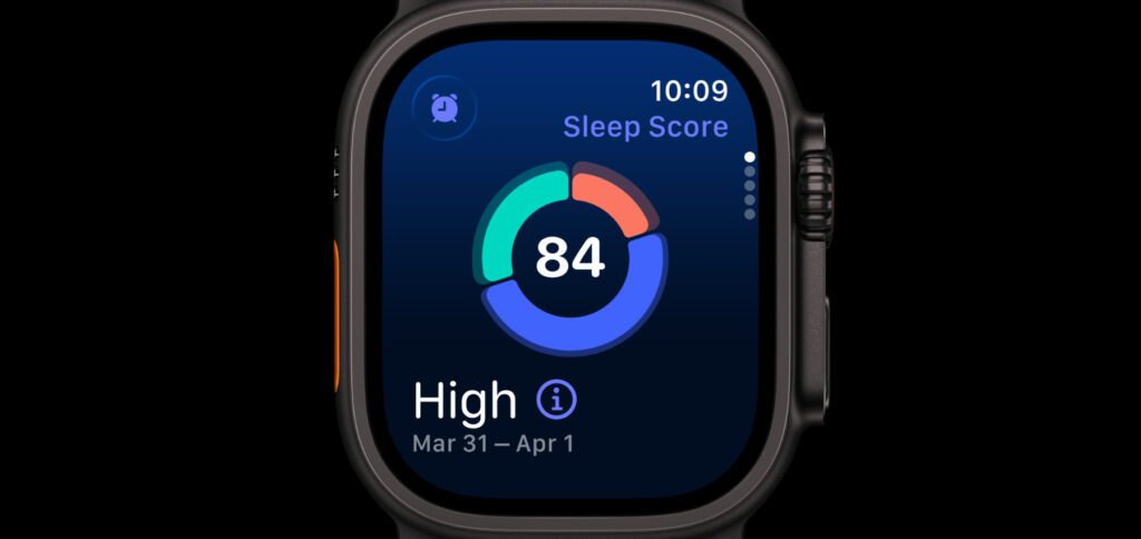 Außerdem kommen neue Gesundheitsfunktionen auf die große Apple-Uhr. Dazu gehört der sogenannte Schlafindex (Sleep Score). Bei diesem handelt es sich um einen Wert, der die Qualität des nächtlichen Schlafs zu bewerten hilft. Dafür werden die Sensorwerte für Herzfrequenz, Temperatur, Blutsauerstoff und Atemfrequenz mit einbezogen. Sogar Schlafapnoe soll damit potenziell erkannt werden.