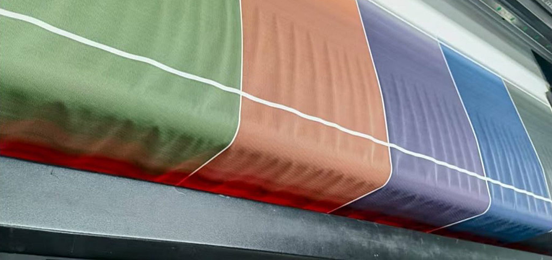 - Sichtbare Textilstruktur in einem „High-Tech“-Design