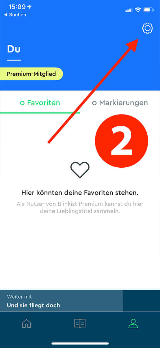 - Blinkist-App öffnen (man landet auf dem Dashboard)