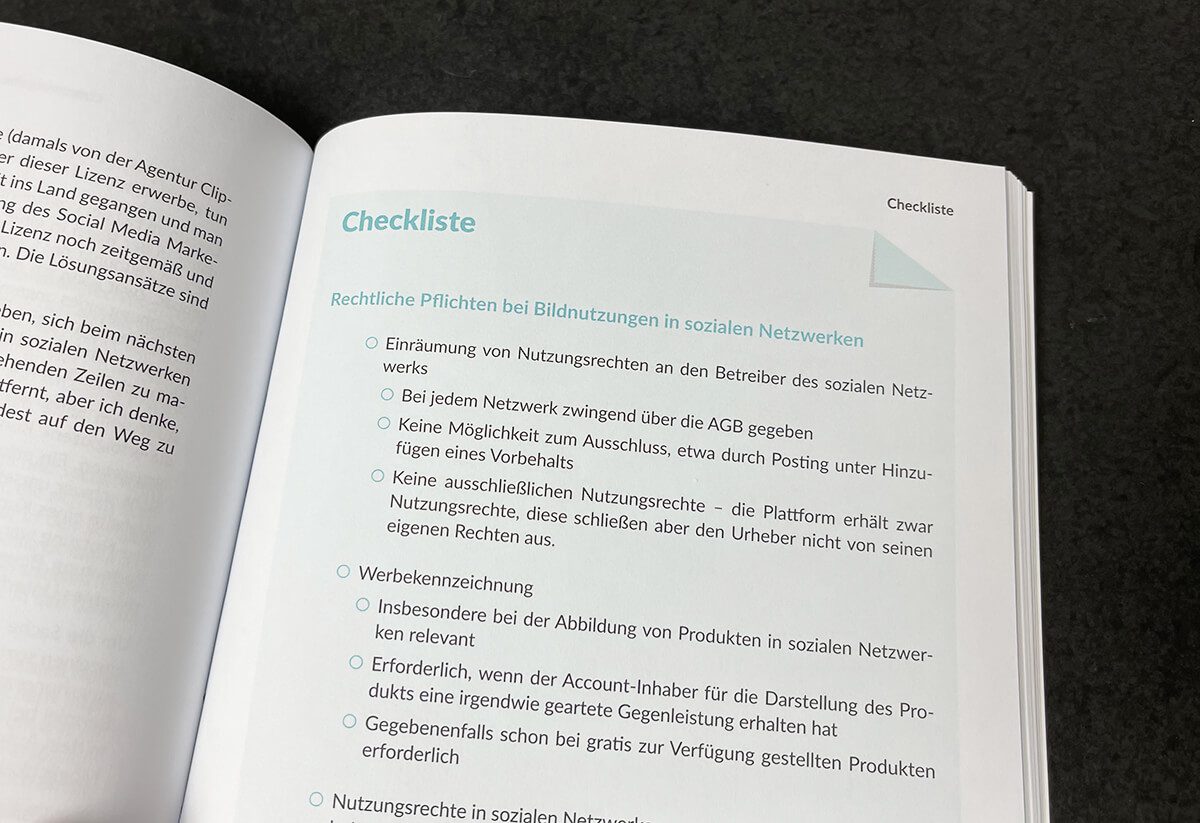 Wer eine Webseite hat und soziale Kanäle wie Facebook, Twitter, Pinterest oder ähnliche nutzt, der ist genauso in der Zielgruppe des Buches, wie ein Fotograf. Ich würde sogar einem Webmaster mit einer Affiliate-Seite das Buch als Lektüre empfehlen, denn auch zur Nutzung von Produktfotos gibt es ein Kapitel, das zeigt, wie man hier auf die Nase fallen kann.